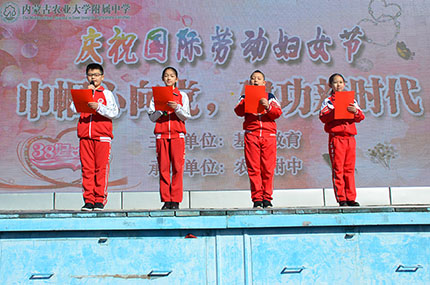 阳春三月,万物回春。2018年3月8日,内蒙古农业大学附属中学举行一年一度的“三八”国际妇女节庆祝活动。全体师生在南操场集合,参加本次活动。