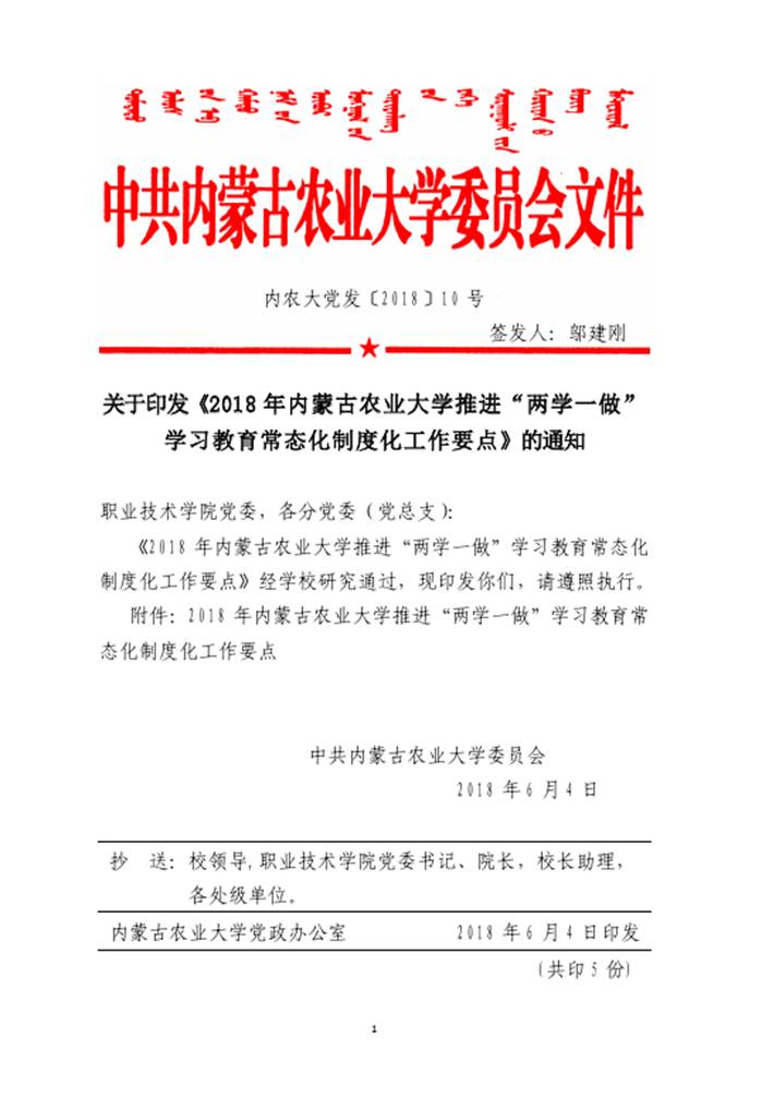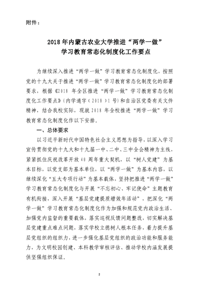 关于印发《2018年内蒙古农业大学推进“两学一做”学习教育常态化制度化工作要点》的通知