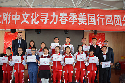 3月26日上午,学校在励志楼多功能厅举行了“2018年文化寻力春季美国行回团分享会”,会前校领导与来宾进行了校园、各展厅、教室的参观,会上出团主领队刘俊副校长、学生及家长代表分别做了总结与分享发言,美国北卡罗莱纳州斯泰茨维尔学区代表Mark先生向我校颁发《国际人才培养基地学校联合声明》,双方互为海外分校。下午,Mark先生作为学区代表与我校八年级有出国留学意向的学生进行了海外分校入学面谈交流。