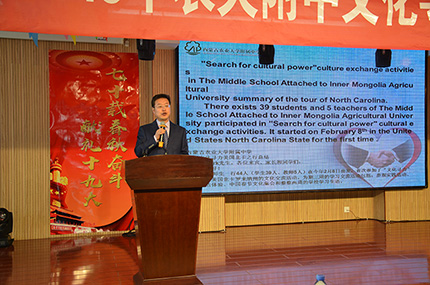 为了深入学习贯彻落实党的十九大精神和中共中央办公厅、国务院办公厅《关于实施中华优秀传统文化传承发展工程的意见》,进一步推进教育国际化和中华优秀传统文化进校园工作,促进学校“精品办学、内涵发展”,切实为同学们提供更有质量的教育,将来成长为适应新时代建设发展需要的国际化人才。2018年2月8日至28日,学校作为国家文化部民族民间艺术中心发起的文化寻力项目基地学校,首次参加了“文化寻力”项目设在美国北卡罗莱纳州的文化交流活动。